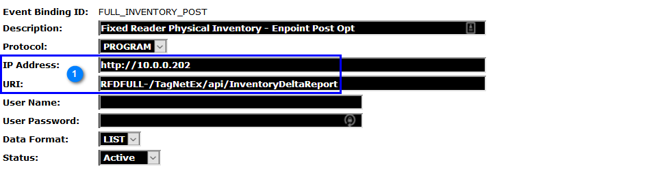 URI set to RFDFULL. Optionally the URI can include the endpoint location of Endpoint Post option selected. |
