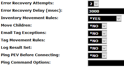 In the example below, the Inventory Movement Rules are set to *YES. Refer to the the Binding Change for detailed explanations of each directive. |
