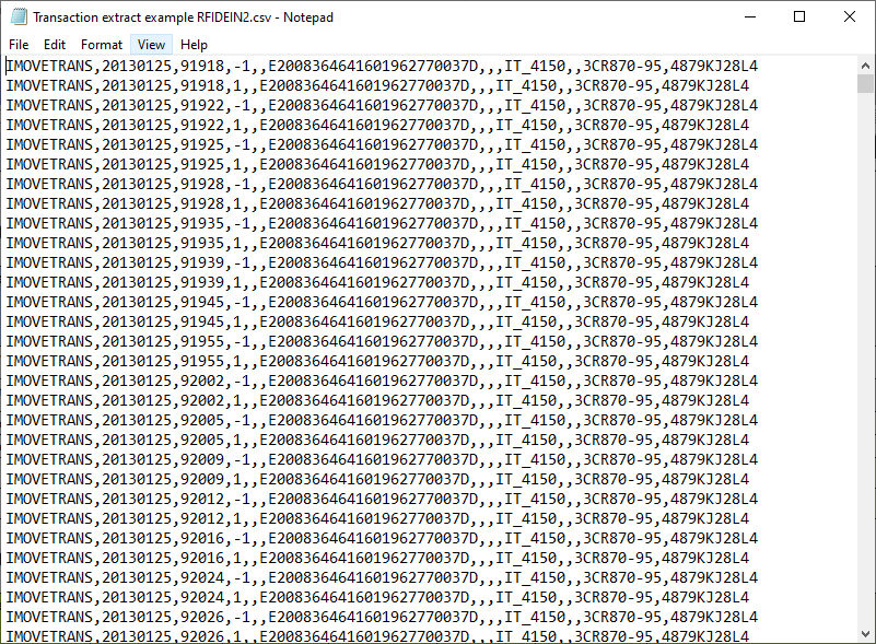 This Binding extracts inventory transactions from TagNet and formats into CSV text file format. This can be run on a scheduled basis using the TagNet Scheduled Task Manager. They layout mapping can be seen further below.