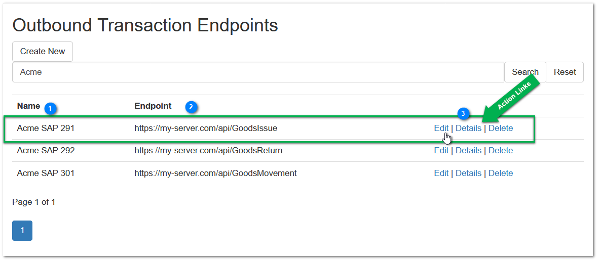 This function enables setting up of external HTTP Endpoint definitions. Once an endpoint has been defined here, it can be linked up with an Outbound Transaction Rule. When a transaction occurs that meets that rule, the endpoint is called. Defining an endpoint simply involves adding the Server and URL details along any XSL transformations that will take place at the time of the transaction.